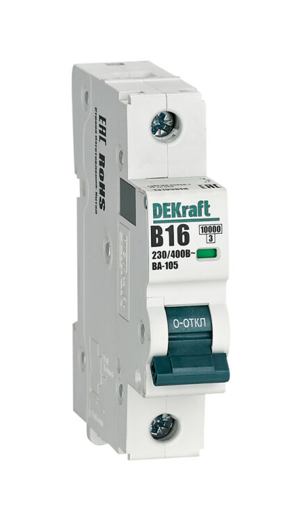 Автоматический выключатель серии ВА-105 DEKraft; 1P; ном. ток 16 А; характеристика В; откл. способность 10 кА; ширина модуля 18мм. Аппараты имеют механизм мгновенной коммутации, 6 монолитных заклепок, которые повышают прочность корпуса. Боковые каналы охлаждения повышают стабильность работы при высоких температурах окружающей среды. Есть возможность установки дополнительных аксессуаров с левой стороны устройства. Аппарат на 100% совместим с корпусами и оболочками DEKraft и Systeme Electric.