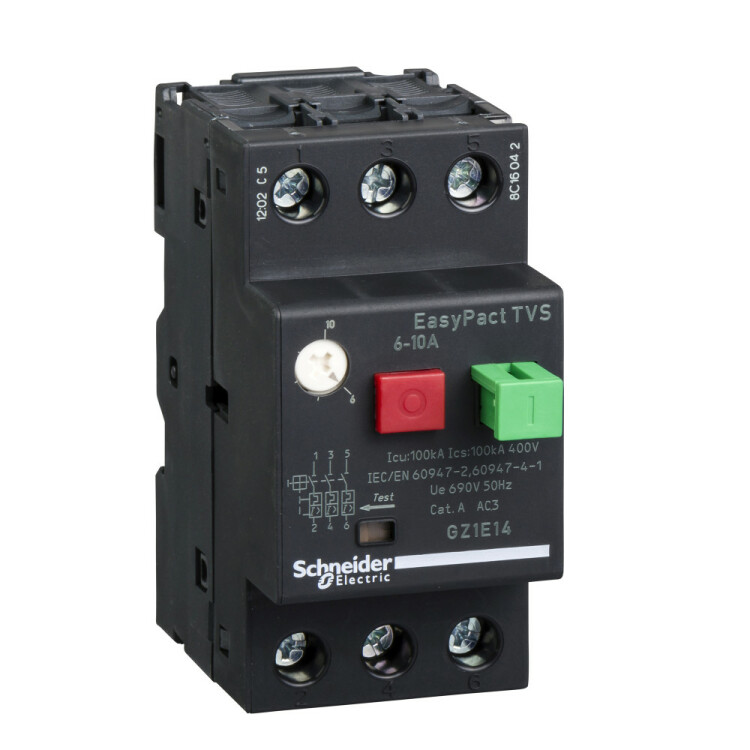 Автоматический выключатель EasyPact GZ1 Schneider Electric, 3-полюсный, Icu = 100 kA/400 В - расцепитель с защитой от перегрузки и КЗ - диапазон уставок защиты от перегрузки 6-10 А - уставка защиты от КЗ Id = 138 А( - 20%)- способ управления - кнопки - исполнение - стационарный - с передними присоединениями - монтаж - на симметричную, несимметричную или комбинированную рейку - ВхШхГ - 44х88х74 мм.Преимущества: Серия EasyPact TVS предлагает оптимальный баланс рабочих характеристик, удобство выбора, приобретения и хранения и расширенную гибкость. Применения: предназначены для стандартного применения