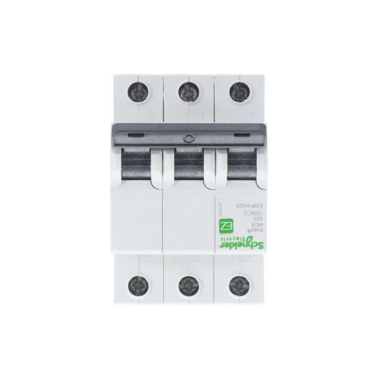 Автоматический выключатель серии Easy9 Schneider Electric, 3-полюсный, номинальный ток 25 А, характеристика В, Icn = 4.5 кА.
