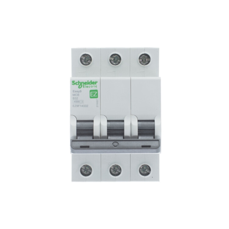 Автоматический выключатель серии Easy9 Schneider Electric, 3-полюсный, номинальный ток 32 А, характеристика В, Icn = 4.5 кА.