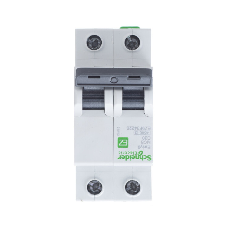 Автоматический выключатель серии Easy9 Schneider Electric, 2-полюсный, номинальный ток 20 А, характеристика С, Icn = 4.5 кА.