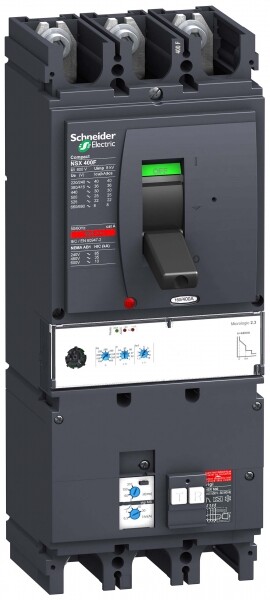 Автоматический выключатель дифференциального тока VigiCompact NSX400N Schneider Electric, 3P3d; номинальный ток 400 А; Icu = 25 кА 380/415 В; Ics=100% Icu; с электронным расцепителем Micrologic 2.3 (защита LSOI) и блоком дифференциальной защиты Vigi MB; ШхВхГ – 220x320x279 мм; исполнение – стационарный; монтаж - на DIN-рейке или плате.