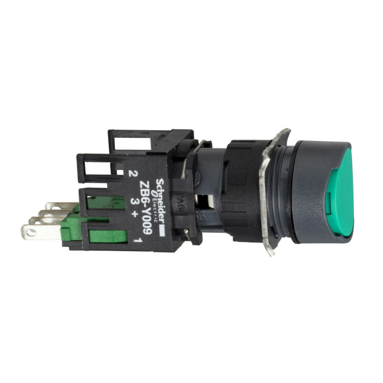 Кнопка 16мм зеленая с возвратом. серия продукта: Harmony XB6 - тип устройства или его аксессуаров: кнопка в сборе - краткое название устройства: XB6 - монтажный диаметр: 16 мм - работа контактов: медленное размыкание. Преимущества: Элементы конструкции визуально различимы с большого расстояния благодаря яркому цвету и маркировке, поэтому ошибки при первоначальном подключении и последующих операциях обслуживания сводятся к минимуму. Корпус со степенью защиты IP66 защищает данное устройство от ударных нагрузок, а также от пыли, воды и вибрации, поэтому оно идеально подходит для работы в неблагоприятных условиях окружающей среды.Применения: в средах, где необходима хорошая устойчивость к химическим веществам и/или двойная электрическая изоляция.