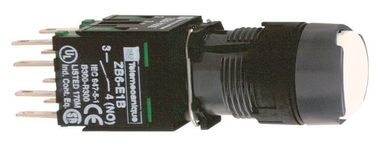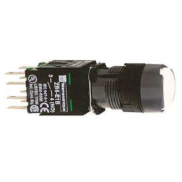 Кнопка 16мм белая с возвратом. серия продукта: Harmony XB6 - тип устройства или его аксессуаров: кнопка в сборе - краткое название устройства: XB6 - монтажный диаметр: 16 мм - работа контактов: медленное размыкание. Преимущества: Элементы конструкции визуально различимы с большого расстояния благодаря яркому цвету и маркировке, поэтому ошибки при первоначальном подключении и последующих операциях обслуживания сводятся к минимуму. Корпус со степенью защиты IP66 защищает данное устройство от ударных нагрузок, а также от пыли, воды и вибрации, поэтому оно идеально подходит для работы в неблагоприятных условиях окружающей среды.Применения: в средах, где необходима хорошая устойчивость к химическим веществам и/или двойная электрическая изоляция.