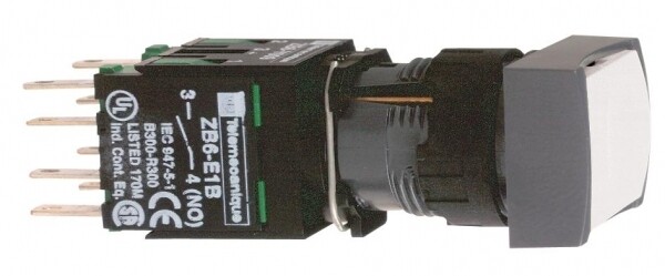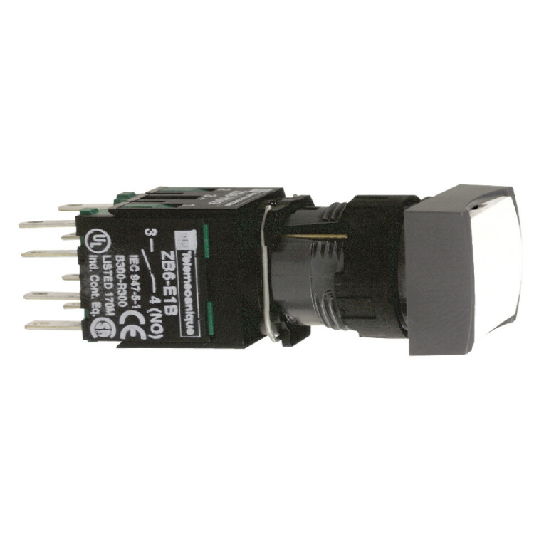 Кнопка 16мм белая с возвратом квадратная. серия продукта: Harmony XB6 - тип устройства или его аксессуаров: кнопка в сборе - краткое название устройства: XB6 - монтажный диаметр: 16 мм - тип контактов: 1 Н.О. + 1 Н.З. - работа контактов: медленное размыкание. Преимущества: Элементы конструкции визуально различимы с большого расстояния благодаря яркому цвету и маркировке, поэтому ошибки при первоначальном подключении и последующих операциях обслуживания сводятся к минимуму. Корпус со степенью защиты IP66 защищает данное устройство от ударных нагрузок, а также от пыли, воды и вибрации, поэтому оно идеально подходит для работы в неблагоприятных условиях окружающей среды.Применения: в средах, где необходима хорошая устойчивость к химическим веществам и/или двойная электрическая изоляция.