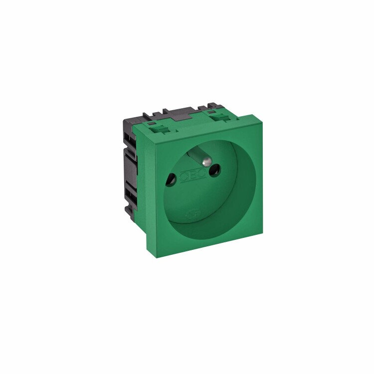 Розетка силовая 0° французский стандарт одинарная 45х45 мм, со шторками, 16А 250В зеленаяSTD-F0 MZGN1(кр.1шт)