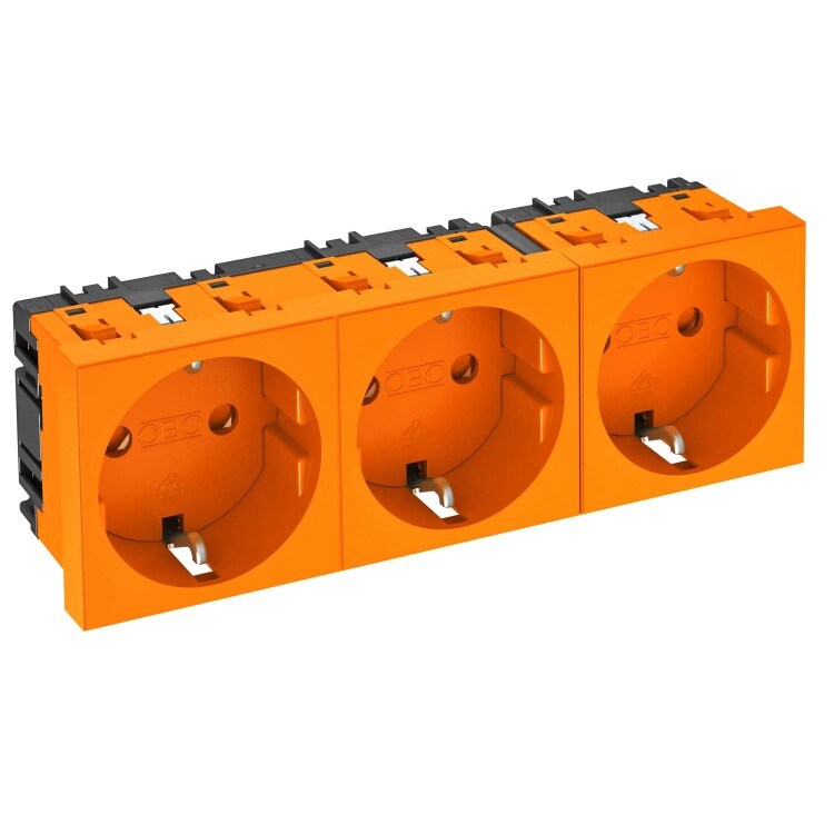 Розетка силовая 0° тройная 3х2К+З, 3 модуля Modul45, 45х135 мм, со шторками, 16А 250В оранжеваяSTD-D0 ROR3(кр.1шт)