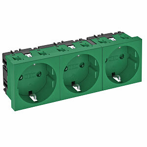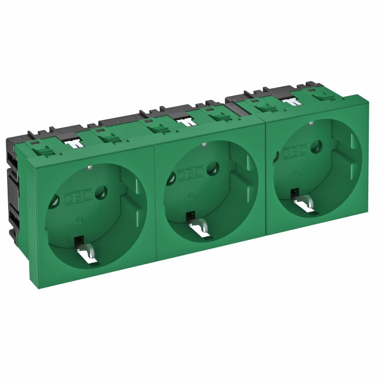 Розетка силовая 0° тройная 3х2К+З, 3 модуля Modul45, 45х135 мм, со шторками, 16А 250В зеленаяSTD-D0 MZGN3(кр.1шт)