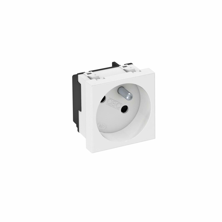 Розетка со стержнем заземления одинарная 33, с защитными шторками, с автоматическими клеммами, 2-полюсная, 16 A, 250 V, автоматические клеммы соответствуют стандарту ГОСТ Р51322.1-2001 МЭК 60884-1:2006.