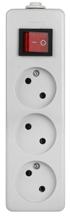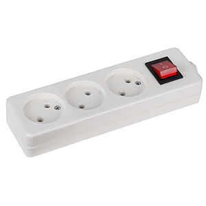 Колодка ЭРА K-3s. На 3 розетки без зазeмления с выключателем. Максимальная мощность 10 А/2200. Для кабеля сечением до 2x1мм2.
