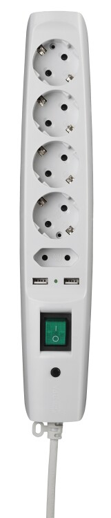 Сетевой фильтр ЭРА SFU-5es-2m-W незаменимый атрибут жителя современного мегаполиса. Фильтр объединяет несколько функций, что особенно удобно в квартире. Сетевой фильтр используется как удлинитель (длина провода составляет 2м). Сетевой фильтр имеет 5 розеток: 4 стандартных гнезда и одно для зарядных устройств. На корпусе также расположены 2 USB-порта напряжением 2.1 А, что дает возможность быстрой зарядки мобильных устройств. Сетевой фильтр имеет надежную защиту, заземление и выключатель. Устройство предохраняет от перегрузки сети, короткого замыкания, импульсных и высокочастотных помех. Для дополнительного удобства на вилке расположено кольцо, позволяющее легко выдернуть удлинитель из розетки. Современный дизайн сетевого фильтра будет выгодно смотреться практически в любом интерьере. Сетевые фильтры ЭРА разрабатывается собственным техническим бюро, проходит проверку на всех этапах производства, что обеспечивает высокое качество продукта.