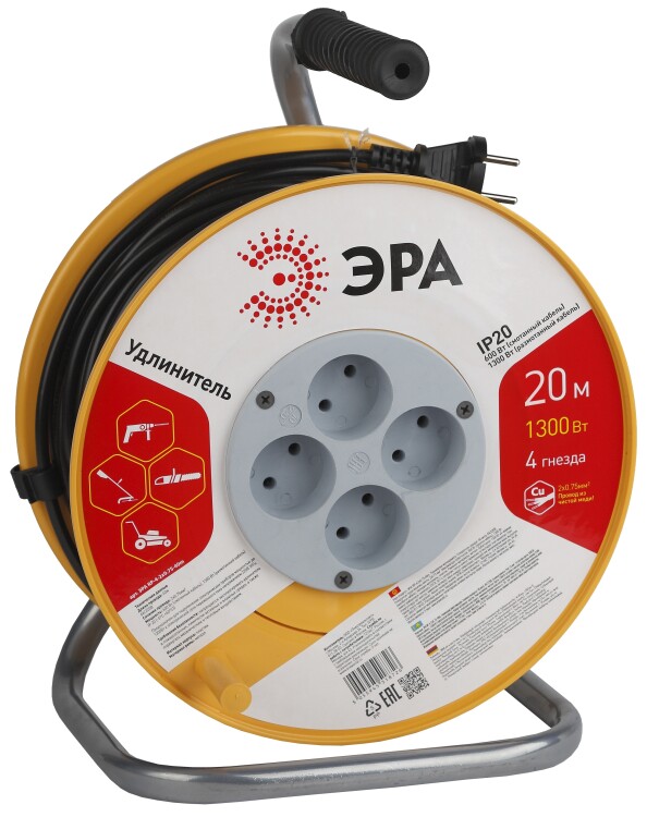 RP-4-2x0.75-20m Удлин-ль силов ЭРА пласт. катушка без зазем. 20м 4гн 2x0.75мм2 (2/48) (кр.2шт) | Б0017618