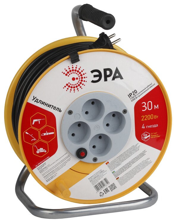 RP-4-2x1.0-30m Удлин-ль силов ЭРА пласт. катушка без зазем. 30м 4гн 2х1мм2 (2/48) (кр.2шт) | Б0017620