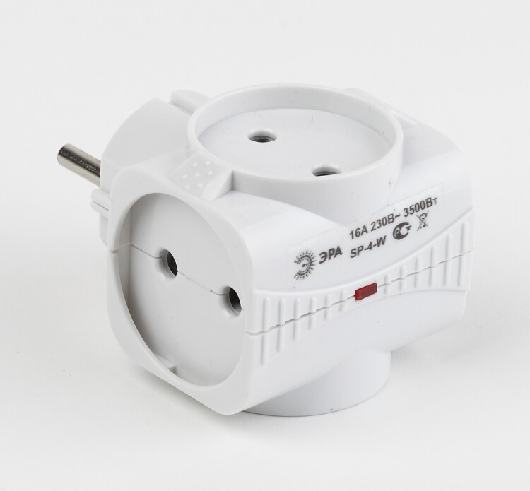 Разветвитель электрический Эра SP-4-W без заземления, 4 розетки, белый. Если в Вашем доме недостаточно розеток, чтобы о дновременно подключить несколько электроприборов, то тройник марки Эра станет Вашим надежным помощником. Электрический разветвитель расчитан на максимальную мощность 16А/3500Вт. Корпус выполнен из ударопрочного и негорючего пластика (поликарбонат). Модель тройника на 16А позволяет подключить мощные бытовые приборы общей нагрузкой до 3500Вт. Не бойтесь включить чайник, обогреватель или микроволновку. Дизайн разработан в России командой Эра Style.