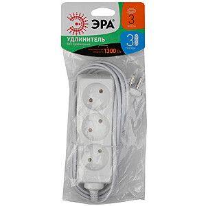 Удлиниль бытовой ЭРА. Серия UX Для подключения маломощных устройств до 1300Вт. Максимальная мощность 6 А/ 1300 Вт. Без заземления. Провод ШВВП.