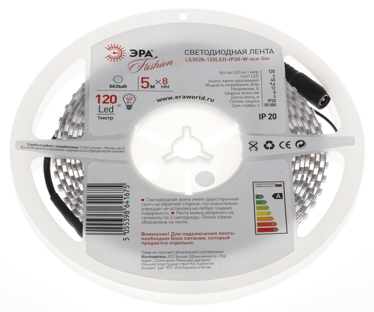 Лента СД ЭРА LS3528-120LED-IP20-W-eco-5m (50/1000) | Б0002337