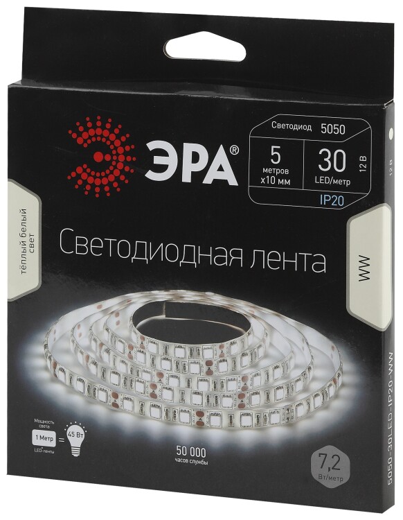 Лента СД ЭРА LS5050-30LED-IP20-WW-5m (50/1000) | C0043040