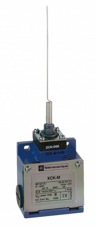 Конц. выключатель XCKM, "кошачий ус ", 1НЗ+1НО, безынерц. срабат., 1/2NPT. серия продукта: OsiSense XC - название серии: стандартный формат - тип устройства или его аксессуаров: концевой выключатель - краткое название устройства: XCKM - тип корпуса: фиксированный - тип головки: многокоординатная головка - монтаж: корпусом - движение рабочей головки: многокоординатный - тип контактов: 1 Н.З. + 1 Н.О. Преимущества: Инновации через модульность. Еще более эффективное предложение: больше решений, лучшая взаимозаменяемость с простотой установки. Совершенство модульной конструкции делает решение более гибким для обеспечения лучшей готовности оборудования. Применение: Все промышленные станки: упаковочное оборудование, оборудование для транспортировки материалов, конвейеры, механические станки, оборудование для производства продуктов питания и напитков, сфера обслуживания.