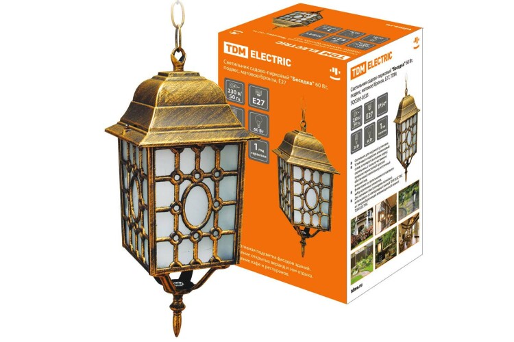 Светильник садово-парковый "Беседка" 60 Вт, подвес, матовое/бронза, Е27, TDM (кр.1шт)