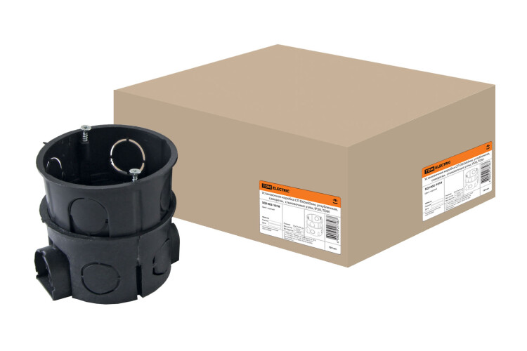 Установочная коробка СП D65х65мм, углубленная, саморезы, стыковочные узлы, IP20, TDM (кр.125шт)