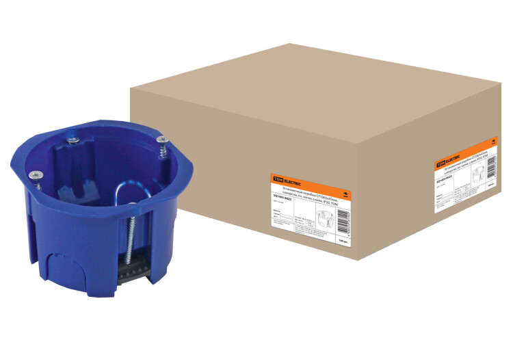 Установочная коробка СП D65х45мм, саморезы, пл. лапки, синяя, IP20, TDM (кр.100шт)