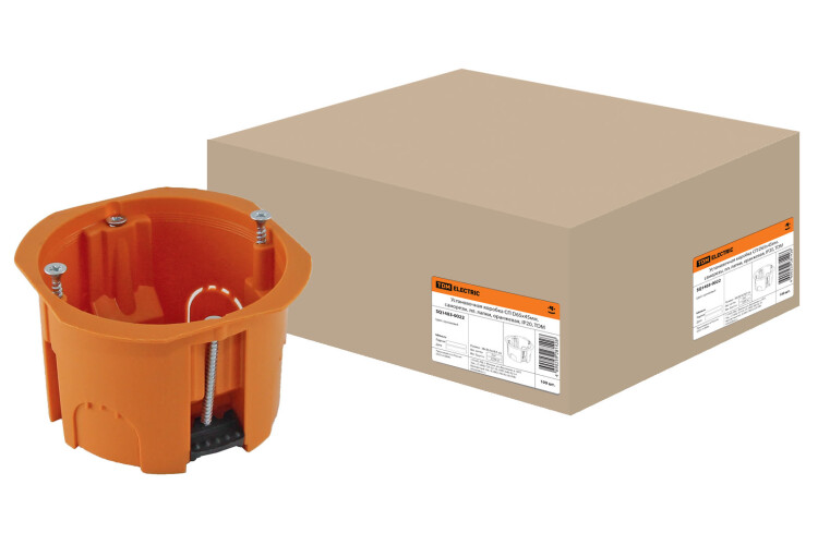 Установочная коробка СП D65х45мм, саморезы, пл. лапки, оранжевая, IP20, TDM (кр.100шт)