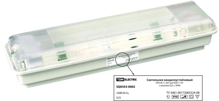Светильник вандалоустойчивый ЛПБ 96-11-007 для КЛЛ 11 Вт с цоколем G23, с ЭПРА, TDM (кр.10шт)
