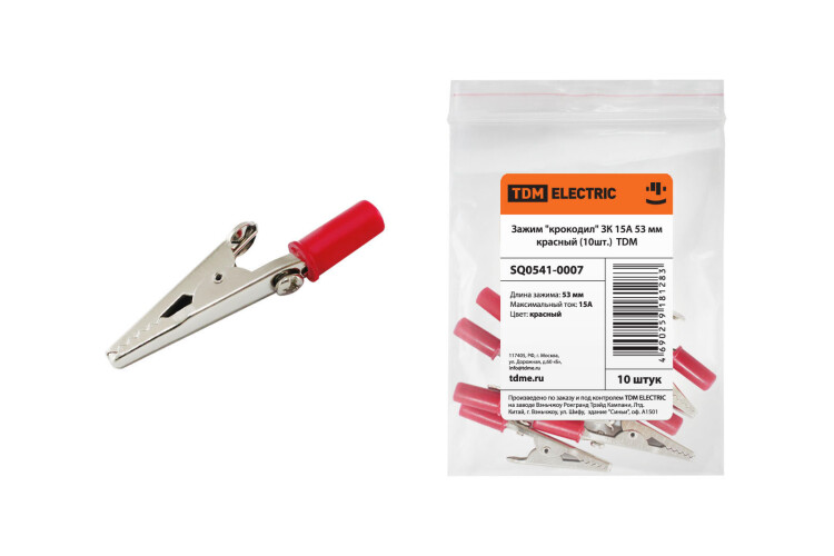 Зажим "крокодил" ЗК 15А 53мм красный (10шт) TDM (кр.10упак)