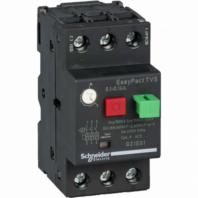 Автоматический выключатель 0,1-0,16A. диапазон: EasyPact - наименование изделия: EasyPact TVS - краткое название устройства: GZ1E - тип устройства или его аксессуаров: автоматический выключательПреимущества: Серия EasyPact TVS предлагает оптимальный баланс рабочих характеристик, удобство выбора, приобретения и хранения и расширенную гибкость. Применения: предназначены для стандартного применения