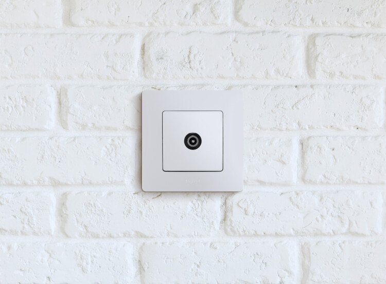 - Присоединение приходящего и отходящего коаксиальных кабелей к розетке осуществляется удобным безвинтовым коннектором.