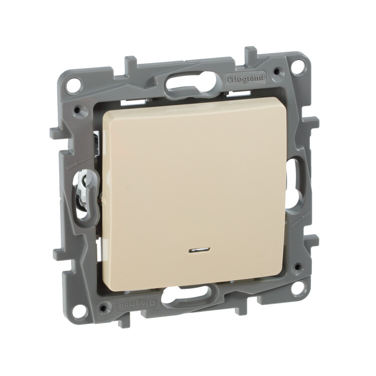 Выключатель с подсветкой одноклавишный Legrand Etika для скрытого монтажа, номинальный ток 10 А, цвет слоновая кость. Используется для управления приборами освещения, вентиляции и т.д.