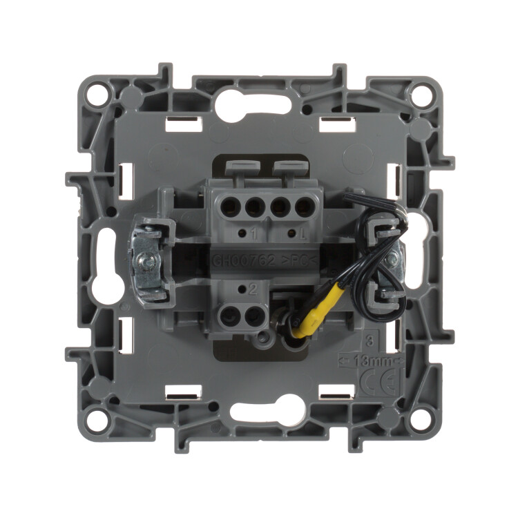 - Благодаря изменяемой схеме подключения, лампа подсветки либо облегчает ориентирование в темноте, либо информирует о включении нагрузки.