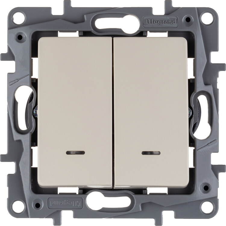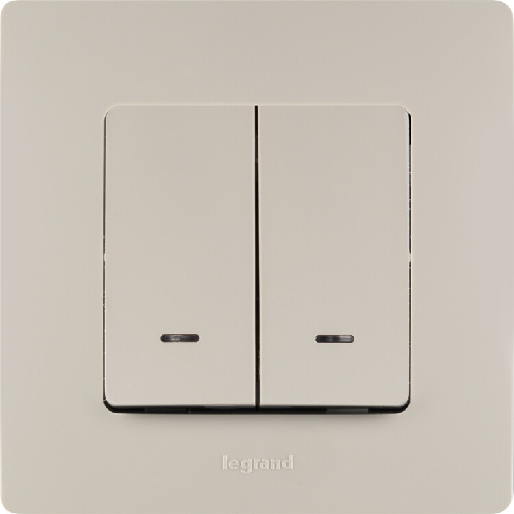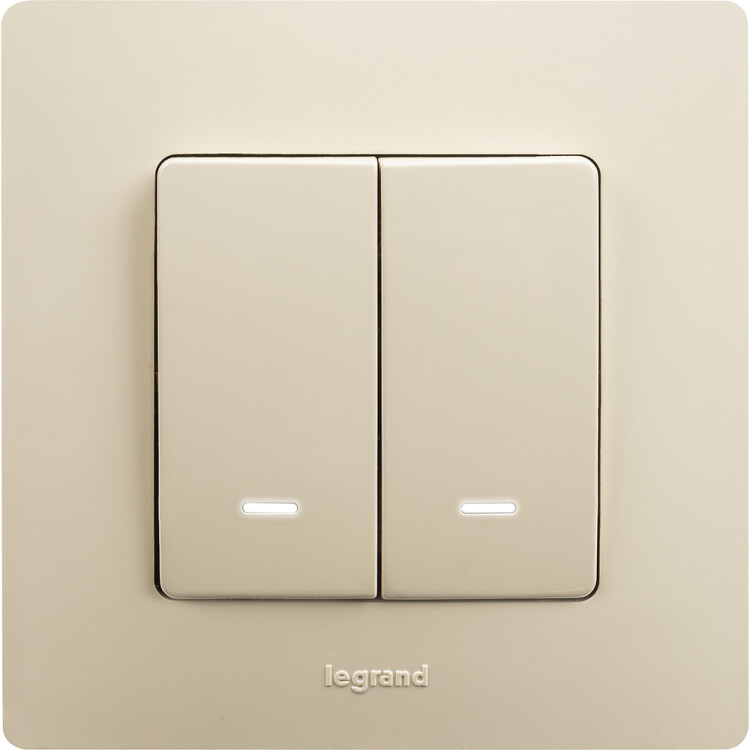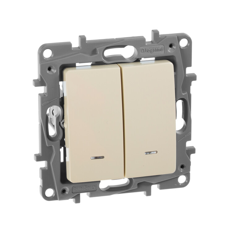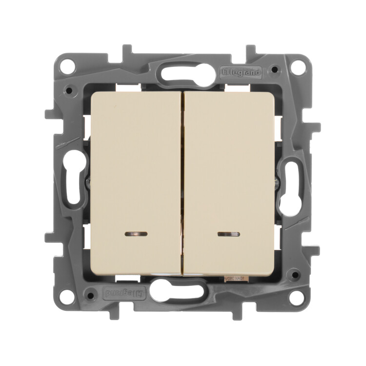 Выключатель с подсветкой двухклавишный Legrand Etika для скрытого монтажа, номинальный ток 10 А, цвет слоновая кость. Предназначен для управления двумя электрическими цепями.