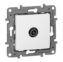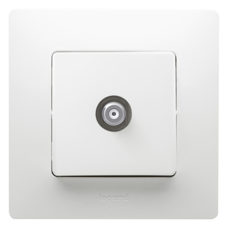 ТВ-розетка тип "звезда" Legrand Etika, цвет белый.Используется для подключения одного ТВ приемника к антенне, а также для организации телевизионной сети по схеме "звезда", когда к каждому телевизору прокладывается своя линия от источника сигнала.