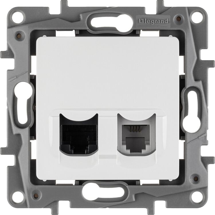 Розетка двойная RJ11+RJ45 категория 5e UTP - Legrand Etika - белый