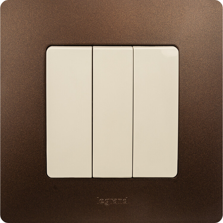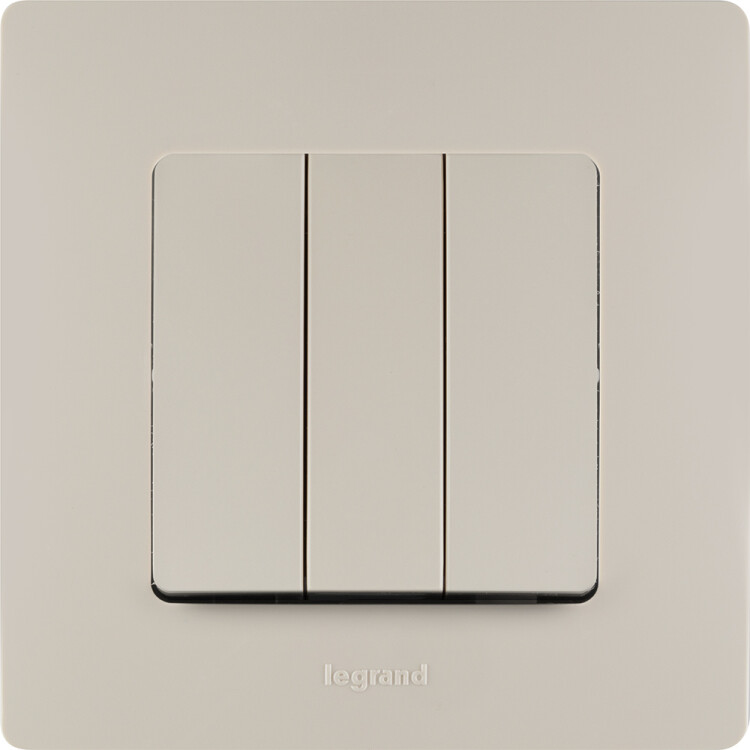 Выключатель трёхклавишный Legrand Etika для скрытого монтажа, номинальный ток 10 А, цвет слоновая кость.