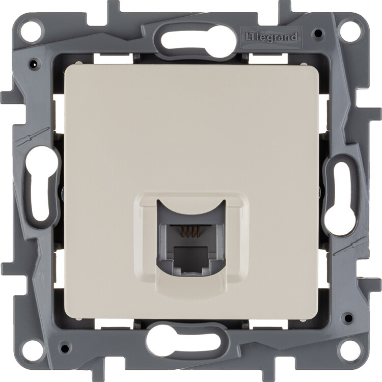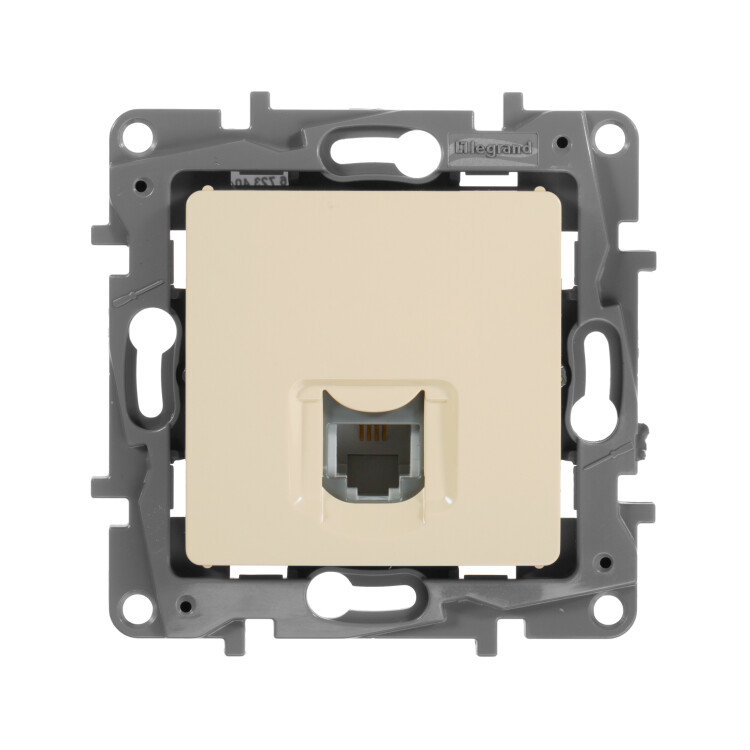Розетка телефонная RJ11 Legrand Etika,для скрытого монтажа, цвет слоновая кость. Служит для быстрого подключения к сетям телекоммуникаций (например, к телефонным сетям общего пользования).