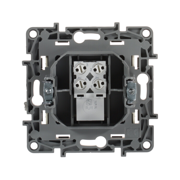 - Присоединение телефонного кабеля к розетке не требует специального инструмента. Надежность контактов обеспечивается техникой быстрого соединения: поворотом самозачищающих клемм на 1/4 оборота.