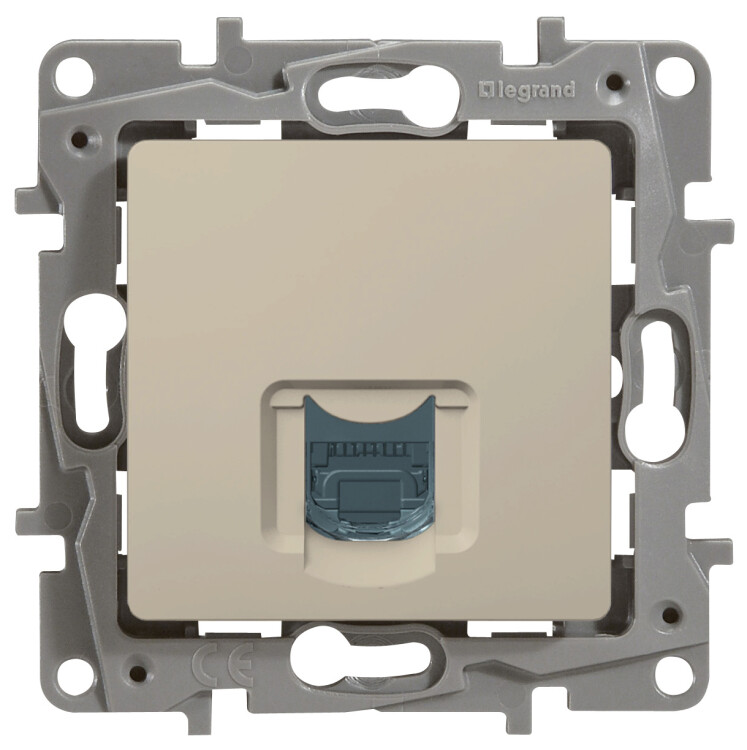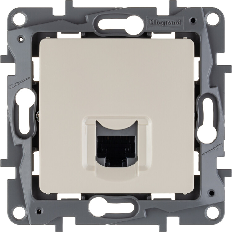 Розетка компьютерная (информационная)Legrand Etika RJ45 UTP скрытого монтажа, цвет слоновая кость. Предназначена для быстрого подключения персональных компьютеров к информационным сетям категории 5e.