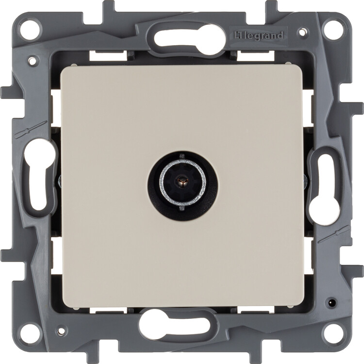 - Присоединение коаксиального кабеля к розетке осуществляется удобным безвинтовым коннектором.