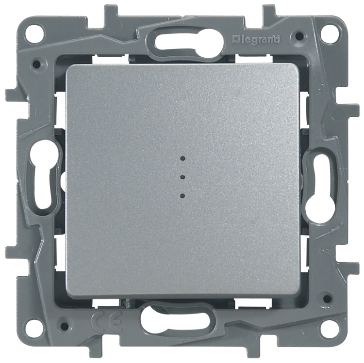 Переключатель с подсветкой одноклавишный Legrand Etika для скрытого монтажа, номинальный ток 10 А, цвет алюминий. Предназначен для управления нагрузкой с одного или с двух мест.