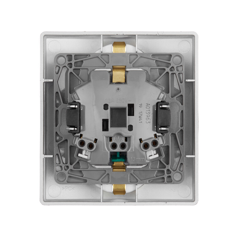 - Все токоведущие части розетки имеют защиту от случайного прикосновения.