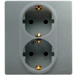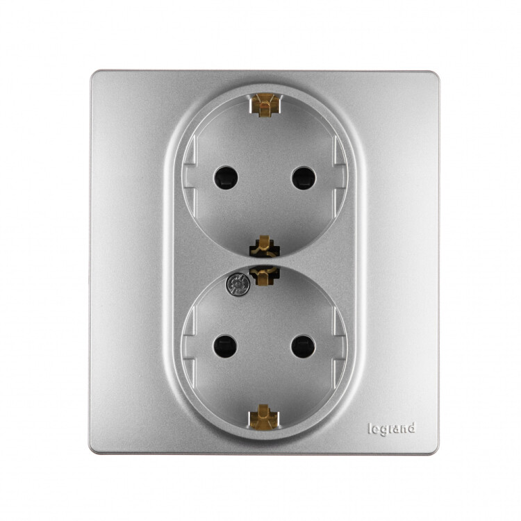 Двойная розетка с заземлением Legrand Etika, для скрытого монтажа, цвет алюминий. Максимальный ток 16 А, максимальная мощность 3680 Вт. Применяется в зданиях, оборудованных для повышения безопасности проводкой с заземлением (с защитным проводником).Позволяет компактно разместить две розетки, используя одно место установки.Шторки осуществляют защитную функцию путём ограничения доступа к токоведущим контактам. Доступ открывается только при подключении вилки.