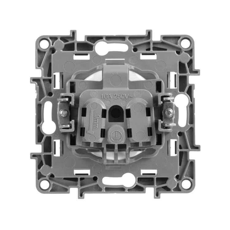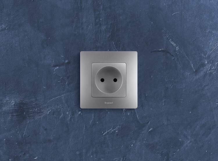 Розетка без заземления Legrand Etika для скрытого монтажа, цвет алюминий. Максимальный ток 16 А, максимальная мощность 3680 Вт. Применяется в зданиях с проводкой без заземления (без защитного проводника). Рекомендуются к применению в квартирах и помещениях с детьми. Шторки осуществляют защитную функцию путём ограничения доступа к токоведущим контактам. Доступ открывается только при подключении вилки.