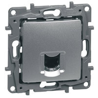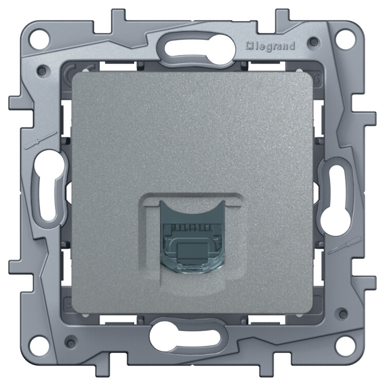 Розетка компьютерная (информационная)Legrand Etika RJ45 UTP скрытого монтажа, цвет алюминий. Предназначена для быстрого подключения персональных компьютеров к информационным сетям категории 6.
