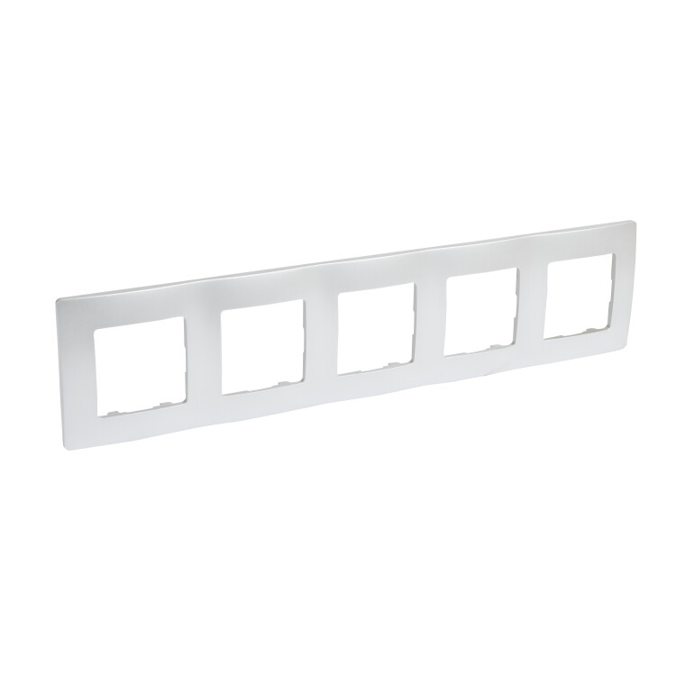 Рамка для розеток и выключателей Legrand Etika, 5 постов, цвет алюминий.