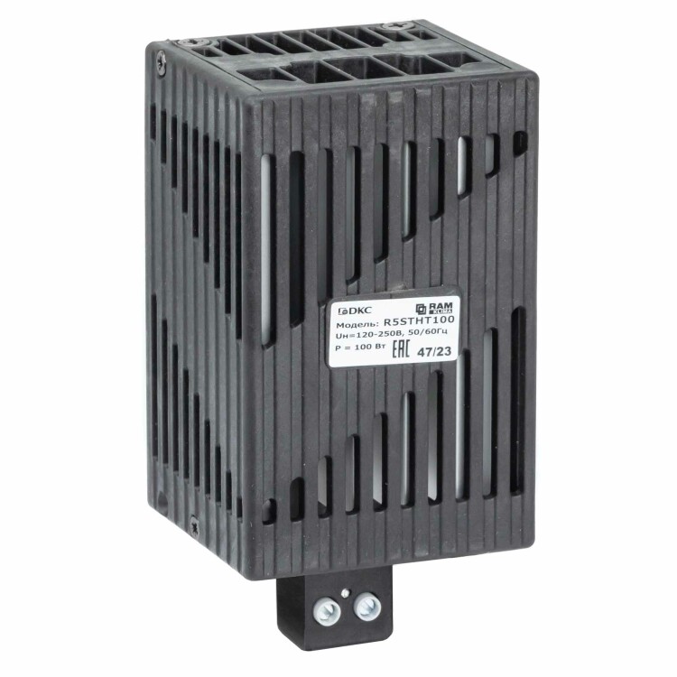 Обогреватель в пластиковом защитном кожухе мощностью 100 Вт предназначен для поддержания необходимой температуры внутри электротехнического шкафа. Работает от напряжения 110…250 В (AC/DC) с частотой 50/60 Гц. Изготовлен из прочного пластика, устойчивого к воздействию окружающей среды. Степень защиты IP20. Компактные размеры 63 x 70 x 140 мм позволяют легко установить обогреватель в ограниченном пространстве. Рабочий диапазон температур от –45 до +70 ˚C делает его подходящим для использования в суровых условиях эксплуатации. Обогреватель оснащен нагревательным элементом РТС-типа, что обеспечивает стабильную и долговечную работу.