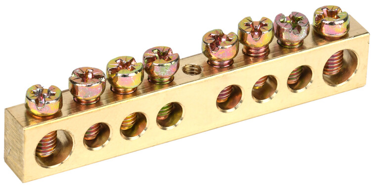 Применяются в щитов ом оборудовании для подсоединения нулевых рабочих (N) и нулевых защитных проводов (РЕ). Крепление шины предусмотрено по центру (типы 8/1; 14/1) и по краям (типы 8/2 и 14/2) через изолятор нулевой шины на 35 мм монтажную DIN-рейку и через угловые изоляторы нулевой шины, а также непосредственно на панель щита. При подключении к шинам медных многожильных проводов рекомендуется оконцевание их наконечниками-гильзами. Выполнены из латуни.