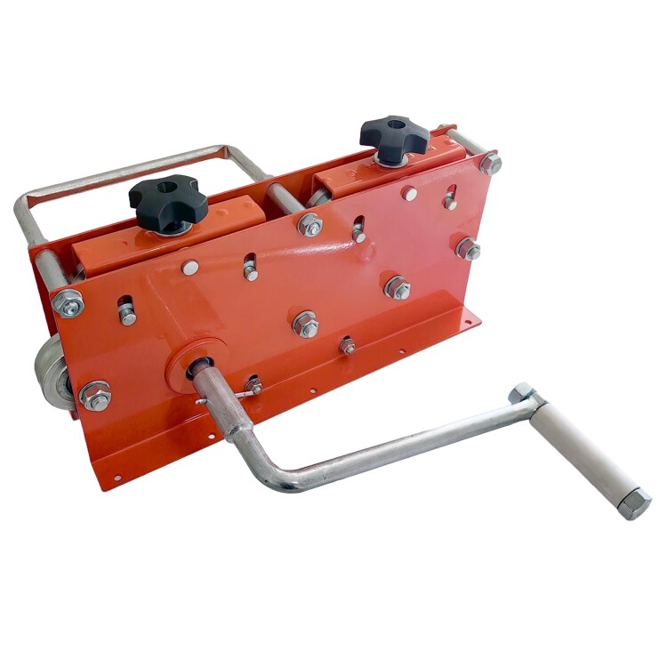 Приспособление используется для выпрямления проводников при раскатке бухт. Инструмент служит как для выравнивания прутка (8-10 мм), так и полосы (от 20х3 до 40х5 мм). Принцип действия – роликовый.