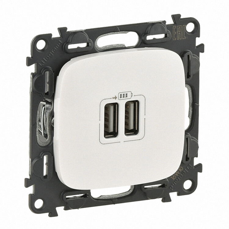 Valena ALLURE.Зарядное устройство с двумя USB-разьемами 240В/5В 1500мА.С лицевой панелью.Жемчуг